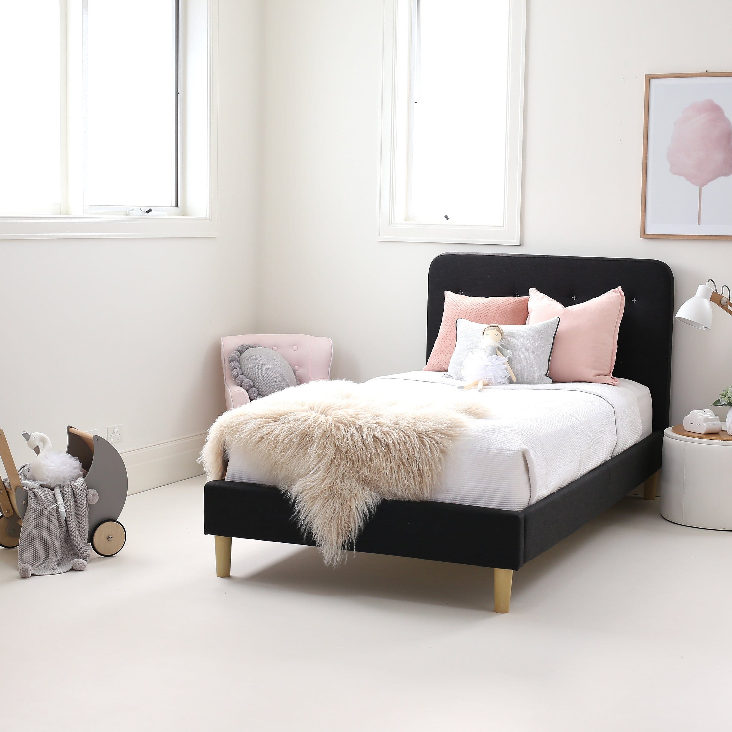 When checking the quality of the bed, ensure there are no small items that may come loose (like screws or decorative features) and that there are no sharp edges or corners. Take a look at the slats and how they are secured – could they become dislodged when there is movement on the mattress? Kids’ beds should all be manufactured to the latest Australian safety standards, too, which should be outlined on labels. If in doubt, ask your retailer!