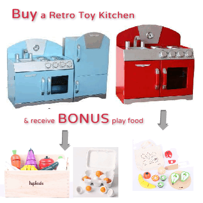 For a limited time receive a FREE Vegetable Crate & Egg Carton Set worth $43.90 when you buy a Hip Kids Retro Toy Kitchen Set OR a play fruit set with carry bag worth $28.95 when you buy a standalone retro toy kitchen only. Offer ends 7/12/2013