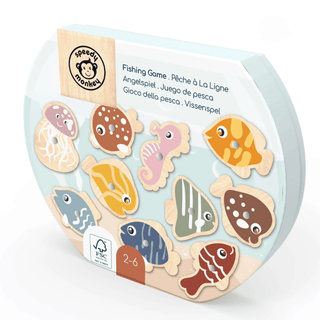 Grab the fishing rod and 'hook' these colourful wooden fish with the magnetic wooden rods. The 2 rods included encourage social play. Build fine motors skill and concentration in catching each fish.