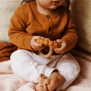The hardwearing beech wood is an ideal material for chewing as it is naturally antibacterial and the smooth ring provides a wonderfully firm surface for your baby to chew away their teething pain.