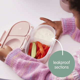 - 2 sealed compartments are leak proof securing wet foods such as puree, yoghurt and dips