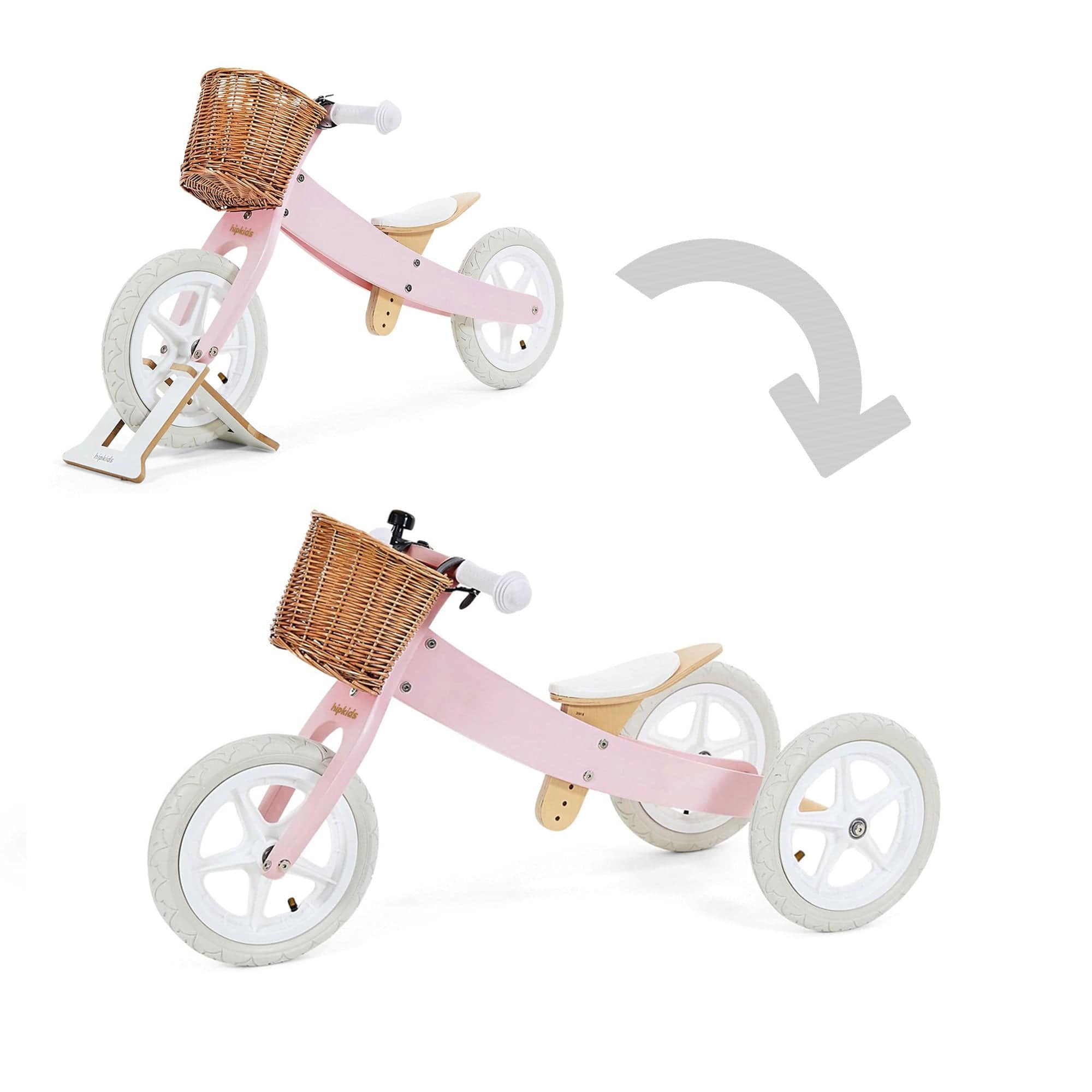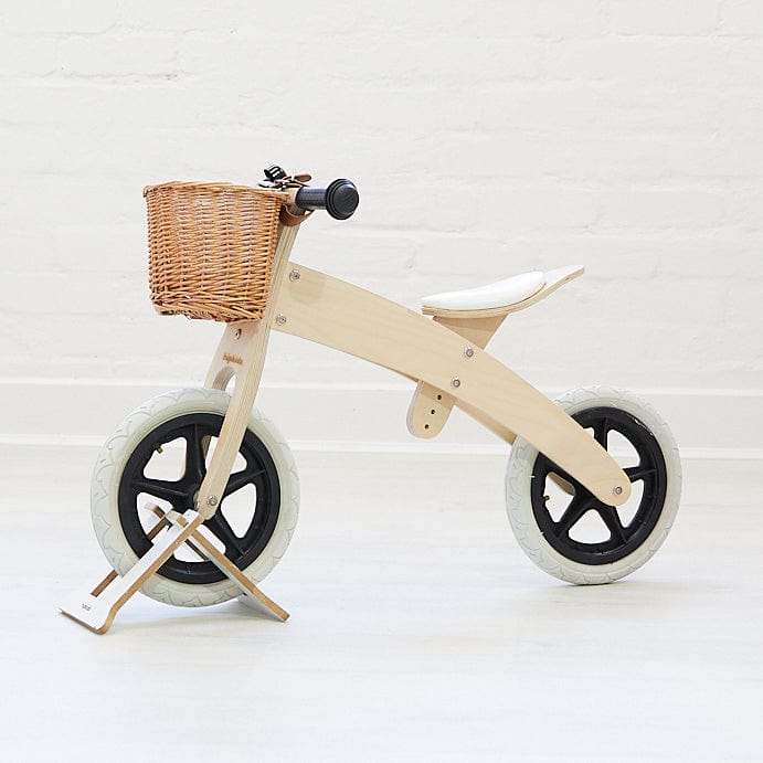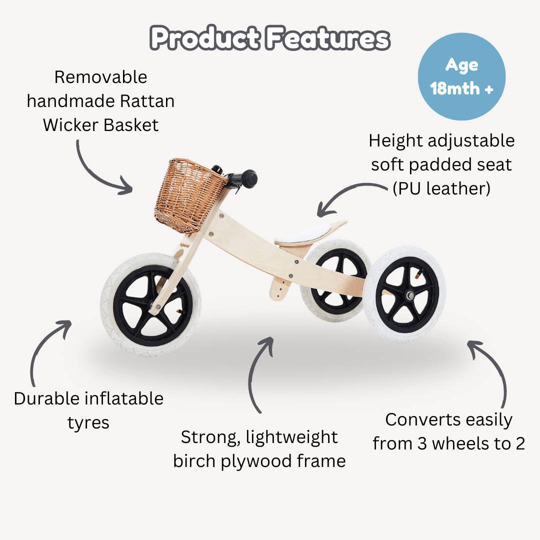 3 in 1 Wooden Trike/Balance Bike with Wicker Basket: Crafted from lightweight yet durable birch plywood, this trike offers a smooth and stable ride. It also converts into a balance bike, extending its use as your child develops.