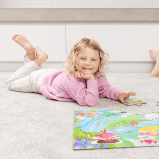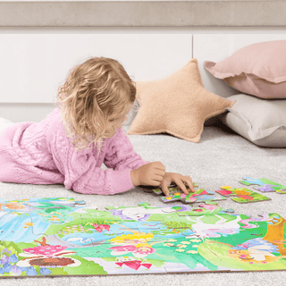Unicorns, fairies and flowers abound in this beautifully illustrated Unicorn Forest 36-piece floor puzzle. All wrapped up in its unique contour-shaped storage box, the jumbo, sturdy pieces of this high-quality puzzle are ideal for little hands.