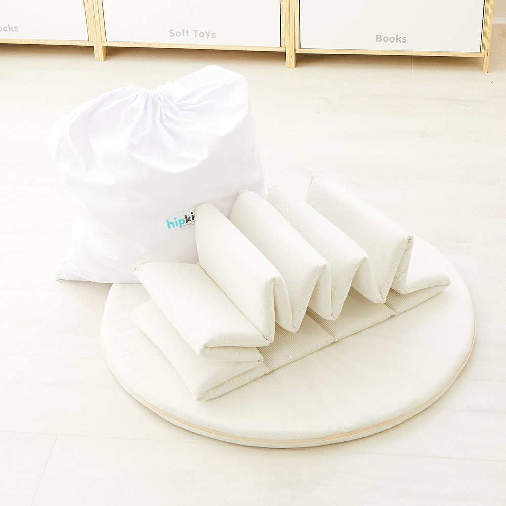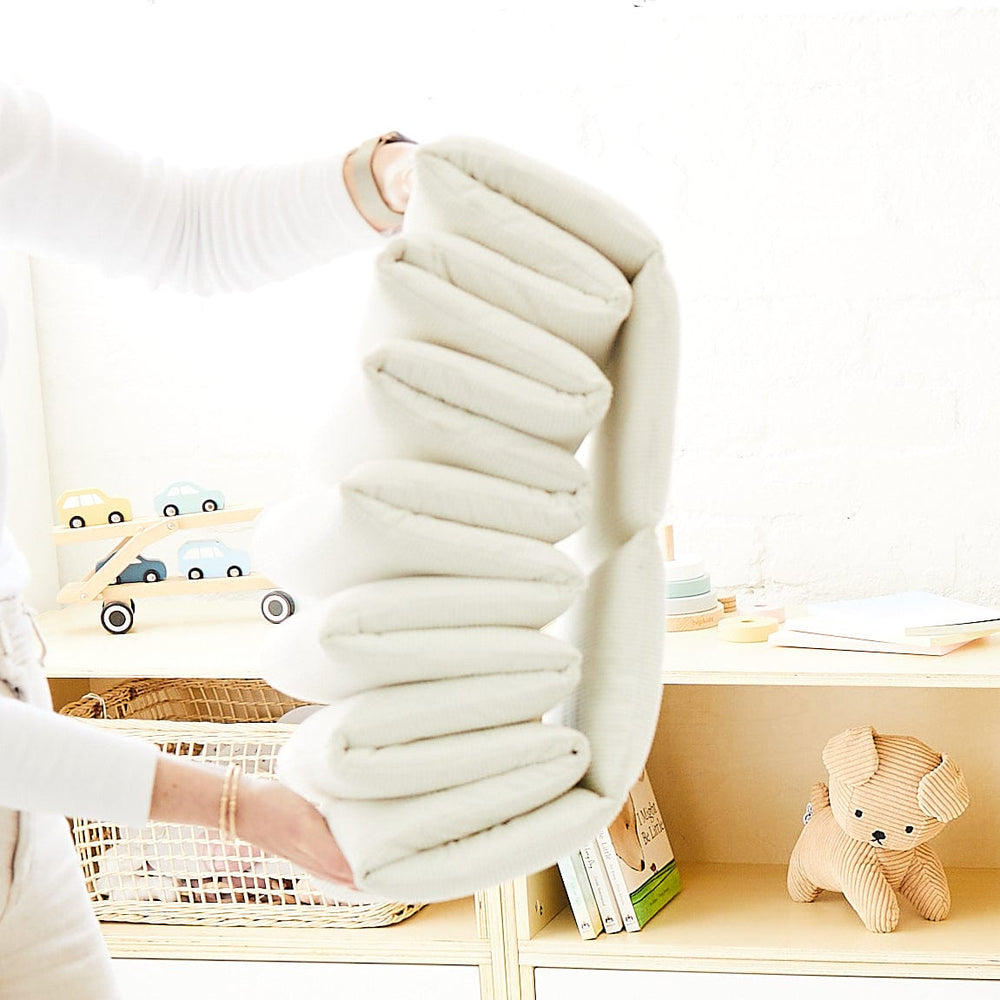 Made from thick foam covered in a soft corduroy material, the Ball Pit is durable, easy to move around, and easy to store.