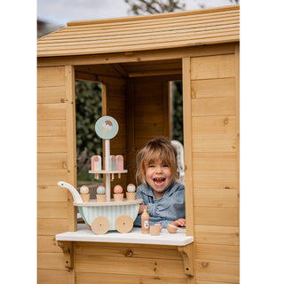 Ice cream for days! Our popular ice cream cart comes filled with delicious ice cream! It will keep the kids busy for hours. The ice cream cart consists of 10 different ice creams, and there are both cone ice cream and stick ice cream to choose from. Also included is a tasty chocolate sauce and an ice cream scoop. The cart is conveniently on wheels so it can easily be moved around or driven around to all the ice cream hungry customers. Works equally well standing on a table or on the ground.
