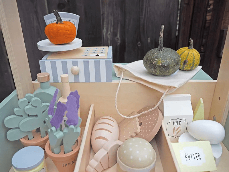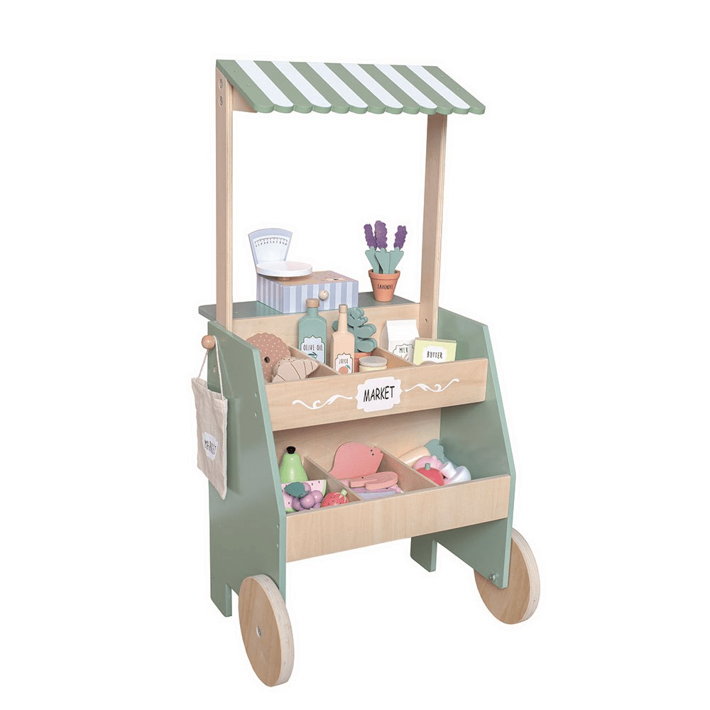 Filled with market food essentials like fruits, vegetables, meat, fish and bread, this stand will provide your little one with hours and hours of fun pretend play.