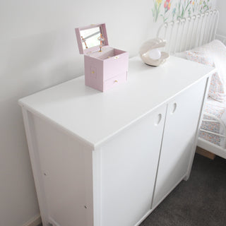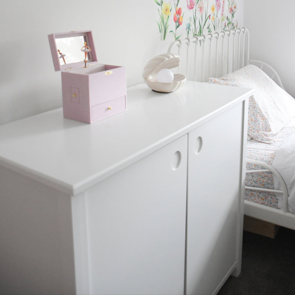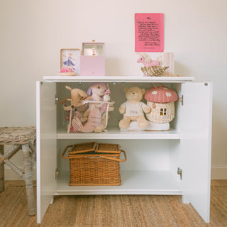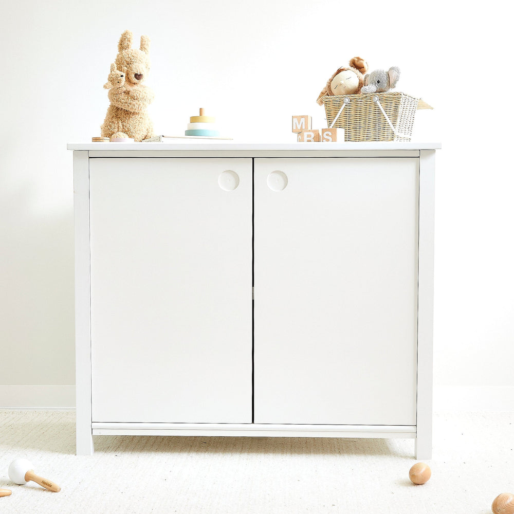 • Generous Storage Space: Featuring two deep, fixed shelves, this cabinet provides ample room for storing everything from toys and books to craft supplies and games. The spacious interior makes it easy to organise items, keeping everything easily accessible but neatly tucked away.