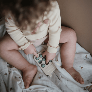 Made with little hands in mind, our phone press toy encourages sensory exploration and the development of fine motor skills with its simple design and soft colors. Featuring food grade silicone and a BPA-free plastic frame, children will tap into learning as they press the bubbles and hear a gentle pop.