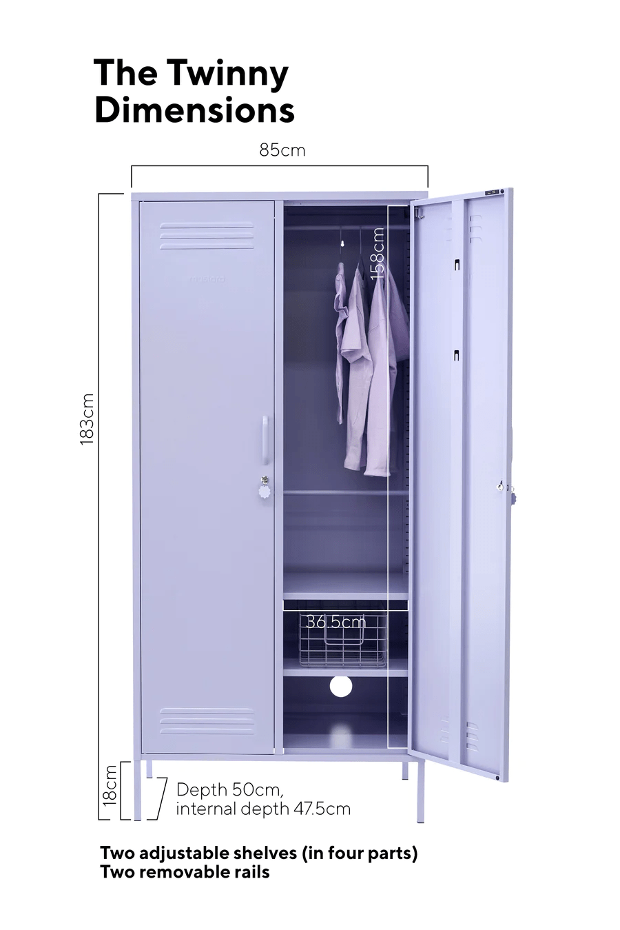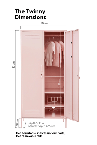 The Twinny is more than just a wardrobe, it's all of your colourful storage dreams in one! Designed for everyone, from teeny baby clothes to a full grown-up wardrobe, The Twinny is all about flexibility.