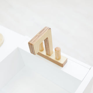 - Under-sink storage compartment for storing play kitchen accessories and play food