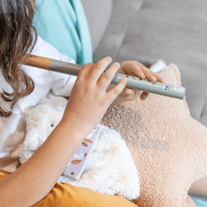 Introducing our wooden Flute - a whimsical wooden wonder for budding musicians! Crafted for tiny hands and big dreams, this flute hits all the right notes of fun, learning and confidence building. From solo performances to family jam sessions, it's the perfect instrument to orchestrate joy and melody. Little ones can blow away the blues with each tuneful toot. Ideal for musical adventures at home or on the go.