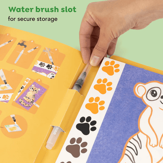 A wonderful intro to painting for little artists, this unique Paint-a-Picture set features 16x pages of amazing wild animals. Each illustrated design card has its own built-in watercolour paint palette, with six vibrant colours activated by the water brush. The pull-out, high quality watercolour card is perfect for displaying and preserving masterpieces. Magnetic closure on the set allows for neat pack-up at the end of the day.
